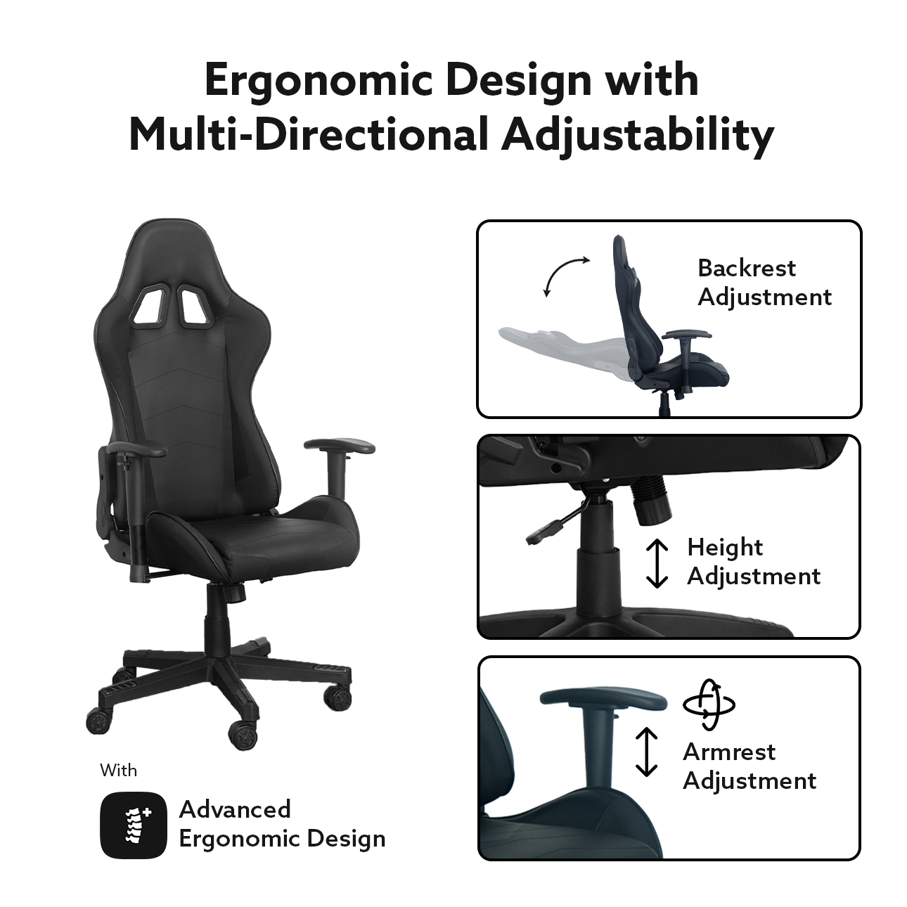 Advanced ergonomic design with Multi-Directional Adjustability.